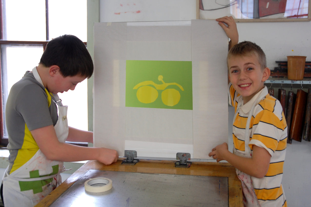 - Two-layer screen print by fourth grader Boston.