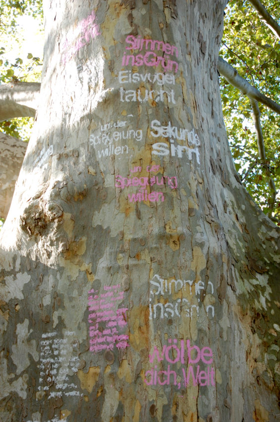 Barbara Beisinghoff is a prolific German printmaker and owner of Atelierhaus Beisinghoff. Eva Wal is a multimedia artist and museum educator in North Rhine-Westphalia, Germany. Her work ranges from artist’s books to performance and video. Be sure to watch Eva’s documentary and keep an eye on the POETREE as the words wear away this season!