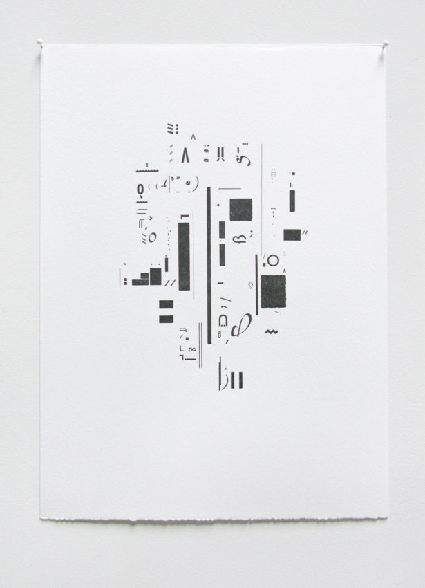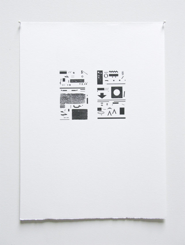 When making a print, I don’t really pick characters for their specific meanings, I am looking more at the aesthetic relationships created. The text is not readable and there is no code. They are silent in that I don’t associate them with a spoken sound, but they do communicate.