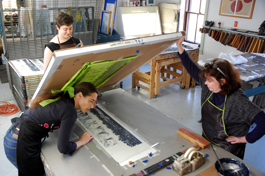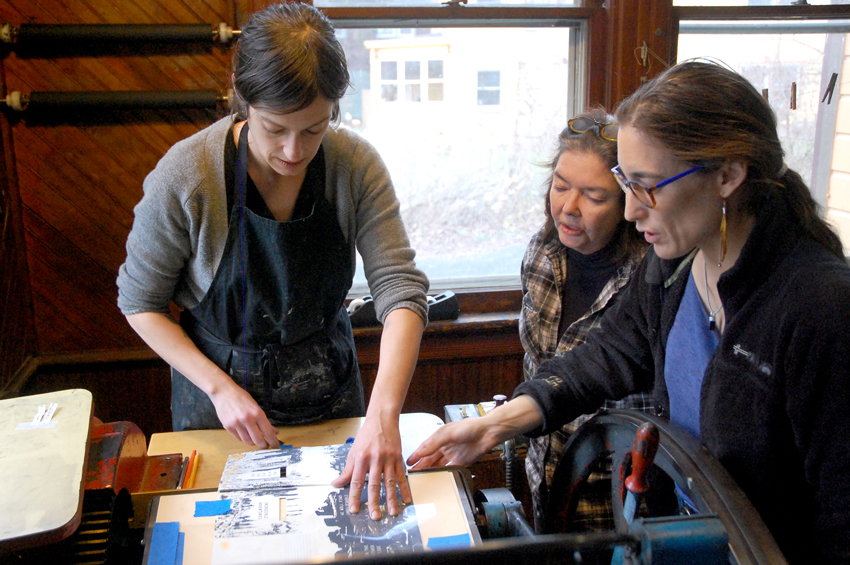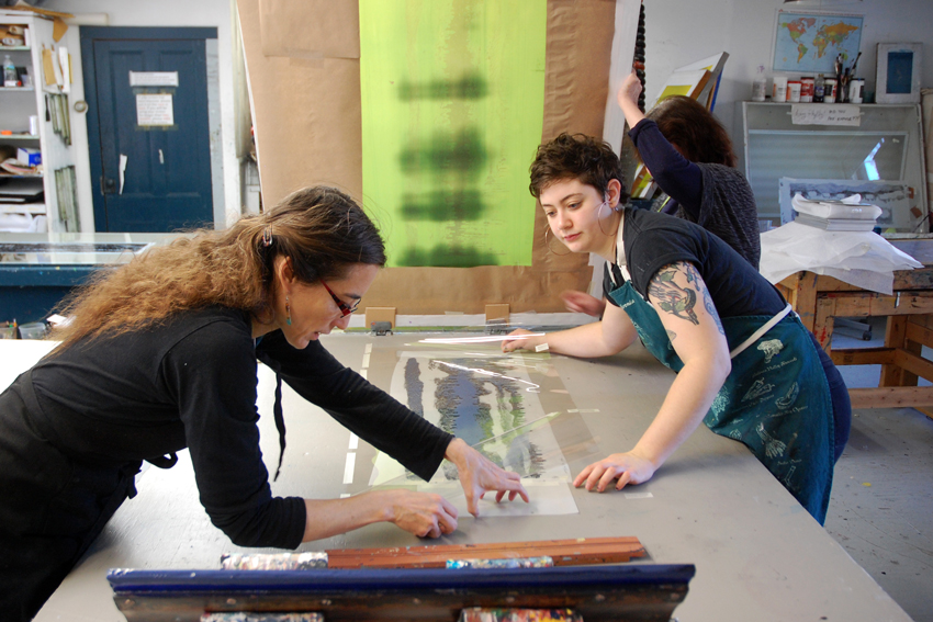 Patty Smith is a book artist and printmaker based in Philadelphia. She is Professor of Art and Printmaking Coordinator at University of the Arts. Claire Fouquet is an animator, watercolor painter, and printmaker based in France, where she is on faculty at EESI. Find more images from their residency on our Flickr!