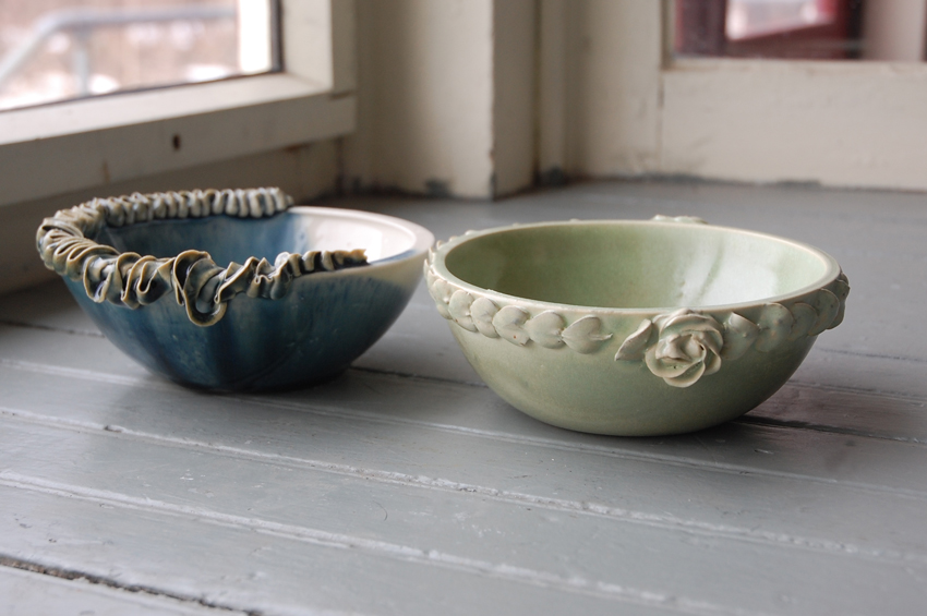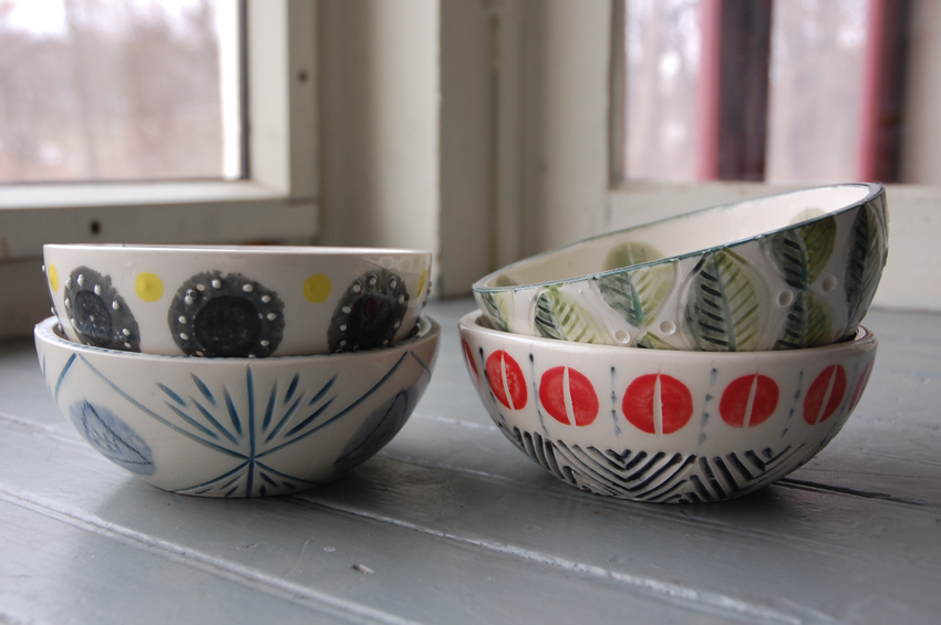 You brought special bakery supplies to decorate your bowls. Can you tell us a little about how you are using slip in your work?