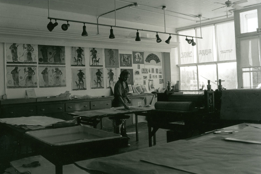 Susan Amons is a muralist, painter, printmaker and longtime friend and alumna of the studio. She studied at Massachusetts College of Art and works out of Peregrine Press, Portland, ME. Find more photographs from her residency on our Flickr, as well as photographs from past residencies here, here, and here.