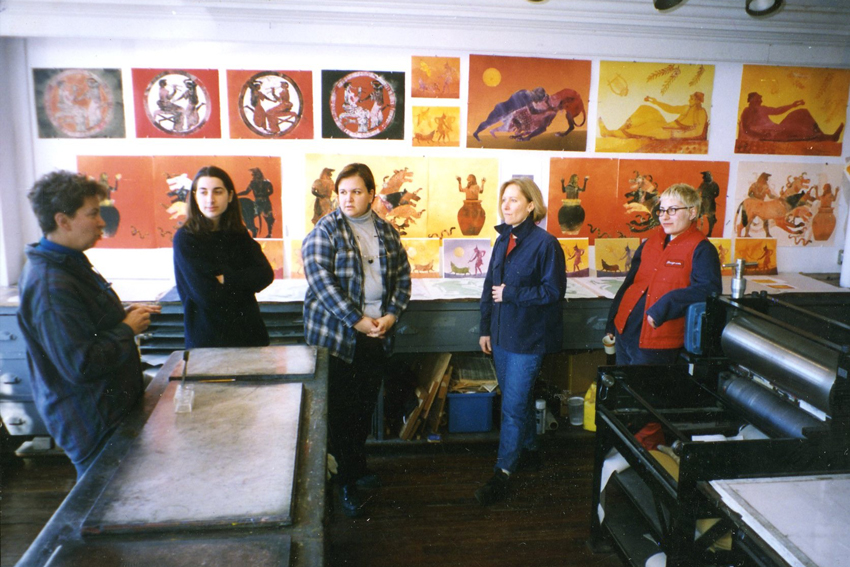 I had the time to perfect that process here. Every time I returned, I might have learned what to add to the ink to make the prints work, or how to make big viscosity prints with the large rollers. Once, I made a six-foot long triptych of swimmers from a beautiful Greek vase.
