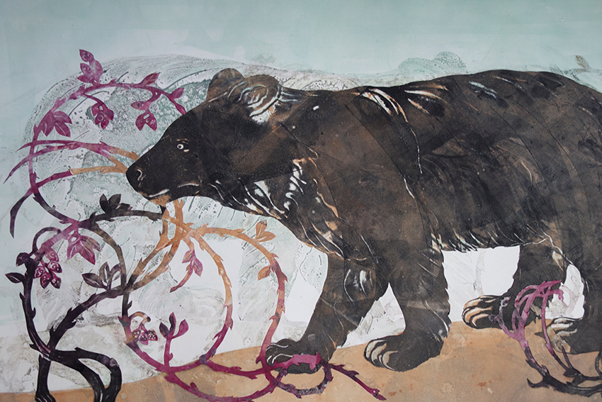 I believe that I printed images of a deer and a bear. The deer had grape vines in its antlers and the bear was standing in the trees behind William’s Lake. Oh- that’s interesting! I’m revisiting the bear again!