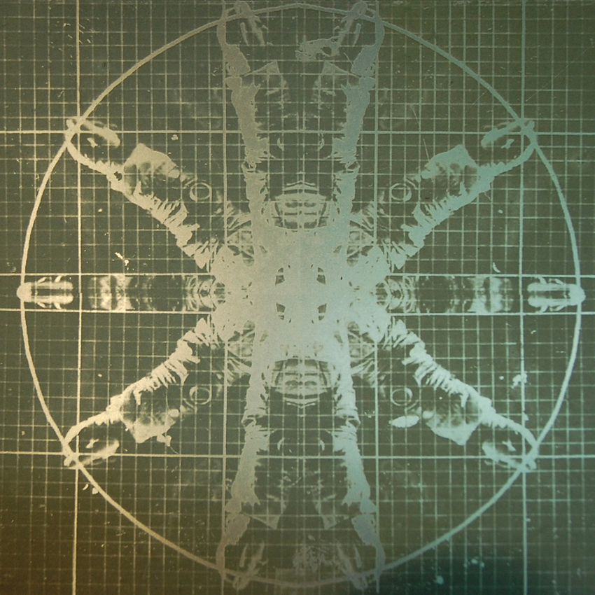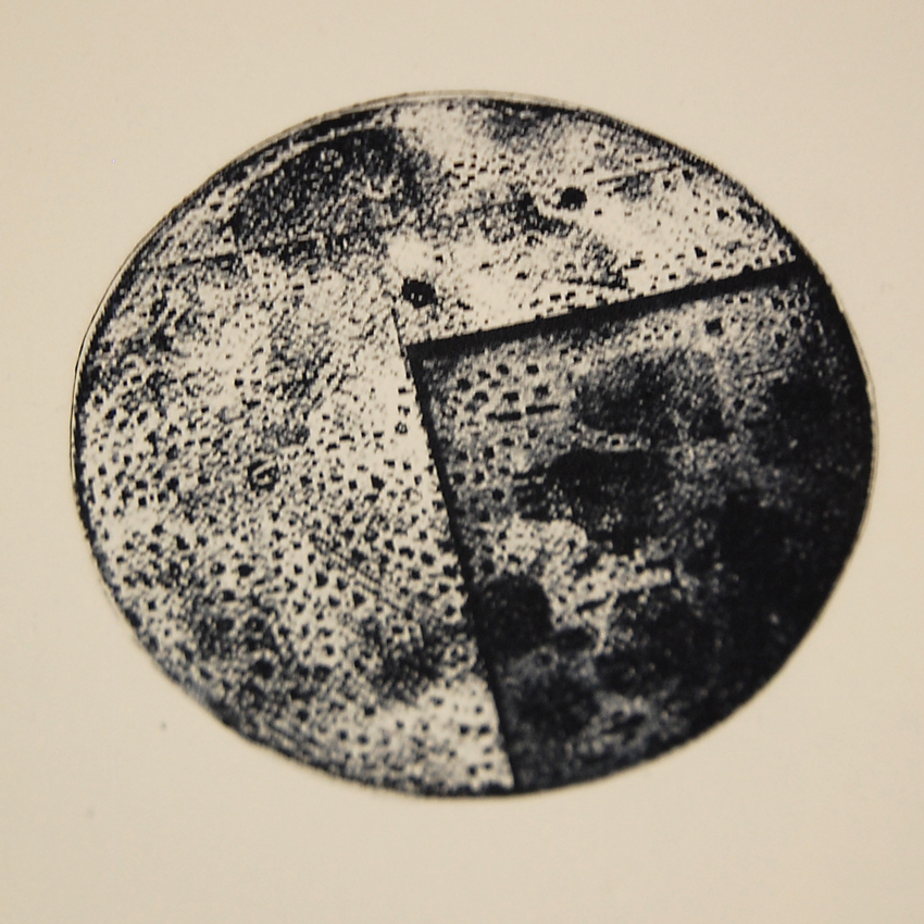 When her homemade compass is complete, the needle will hang above an intaglio print based of a cosmonaut, an image Erin found in the NASA archive and transformed into a midcentury Vitruvian Man. Having begun her residency in the letterpress studio, Erin has since moved to the etching studio to create similar photopolymer plate prints of photographs and screenshots gleaned from the internet. These prints recall the monochromatic, layered imagery of Dadaist experimental film. While not decrying the same 20th century societal and artistic values, they confront the systems within what Erin describes as the “ever-expanding archive.”