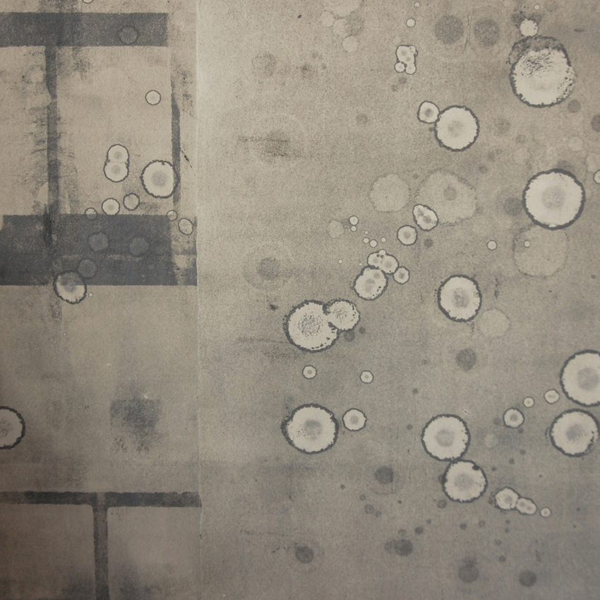 In her practice, Erin reinvents technology that leads us through the limitless data in the in the physical and digital spheres. Mobilis in Mobili, a series of water-filled plaster basins, invited viewers to see through a murky blue surface by moving a wooden ring, simulating a touchscreen device. Similarly, for her installation News [wherever the wind blows us], which she is continuing at WSW with monoprinting, Erin traced the outlines of newspaper text columns, hollowing out the frame through which content appears. The exposed, overlooked, and familiar structures through which we read the world can be parsed just as carefully as the information they were built to house.