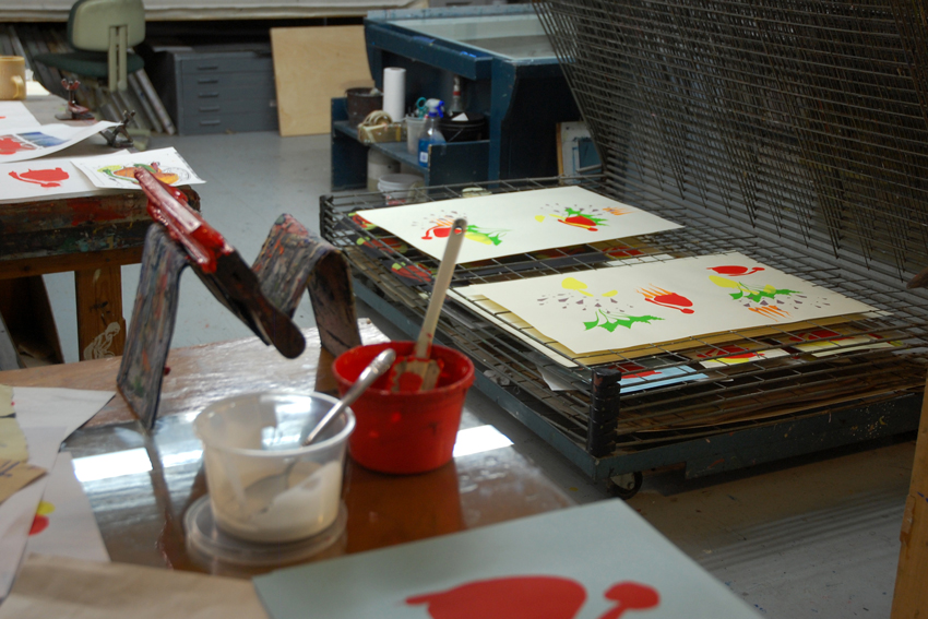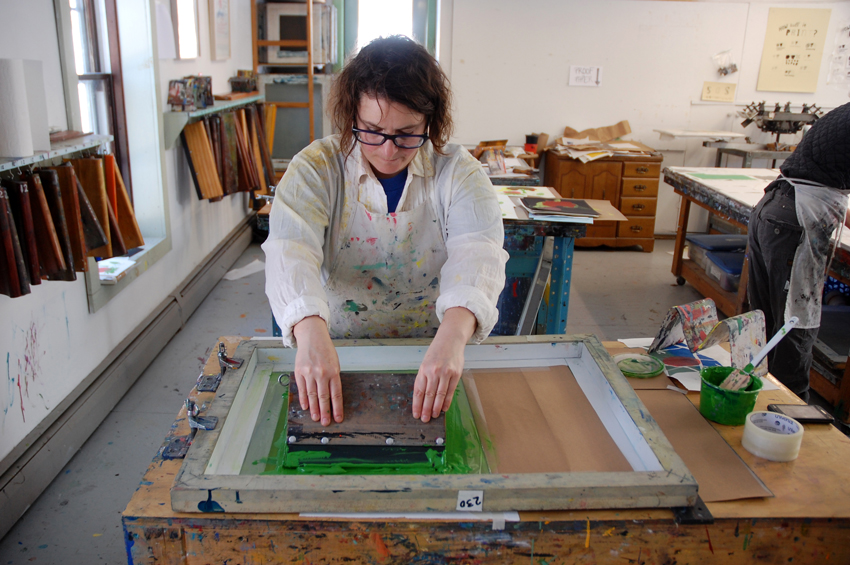 A new gardener, Catskill-based artist, WSW alumna and Studio Workspace Resident, Carrie arrived in the silkscreen studio to print a series on companion planting, or pairing crops which foster optimal growing environments. She first became interested in gardening while living in New York City and since moved upstate, where she and her husband are starting Atina Foods. Now in her third year as a budding permaculture advocate, Carrie is looking to blend her art and farm practices.