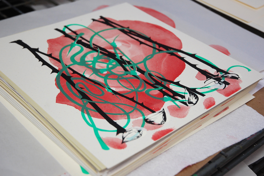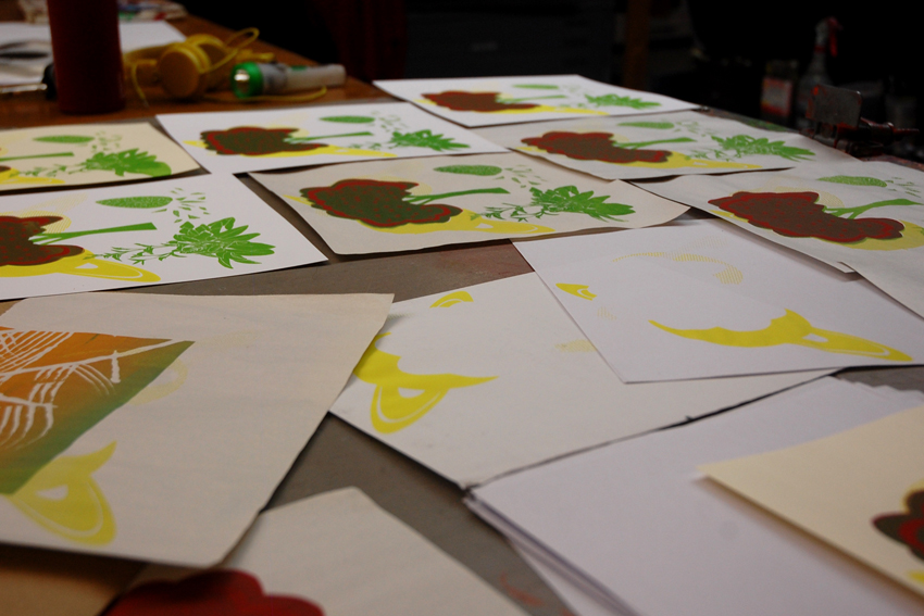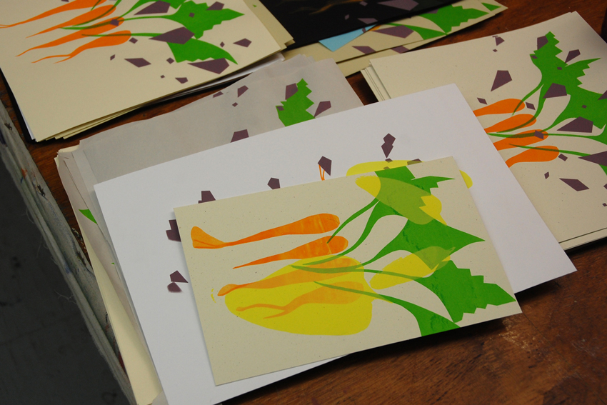 When she’s done screen printing, Carrie will return to finish the work on the letterpress, adding outlines and final details. The last part of the project will be a postcard distributed at upstate farmers markets, asking participants to record their companion planting habits. Like the mung bean, she’ll send these out into the community and hopes they will find their way back—growing an accessible archive for the secrets of local gardening.