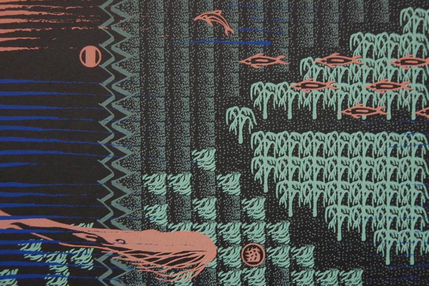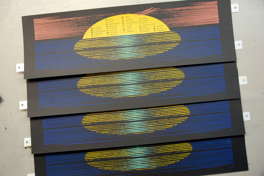 A master screen printer and co-founder of the art and design studio Most Ancient, Graham has addressed through her practice how what she calls the “human whimsy” and waves of cultural and economical fads have lasting impact on the landscape. The Map of Neighboring Bodies is a nautical extension of an earlier, adventure game-inspired project, The Map of Neighboring Territories, which plays across the mythical terrain in an accordion-bound book. Now, having already conquered land in her previous work, Veronica turned to the sea for her Art-in-Ed Artist’s Book Grant Residency.