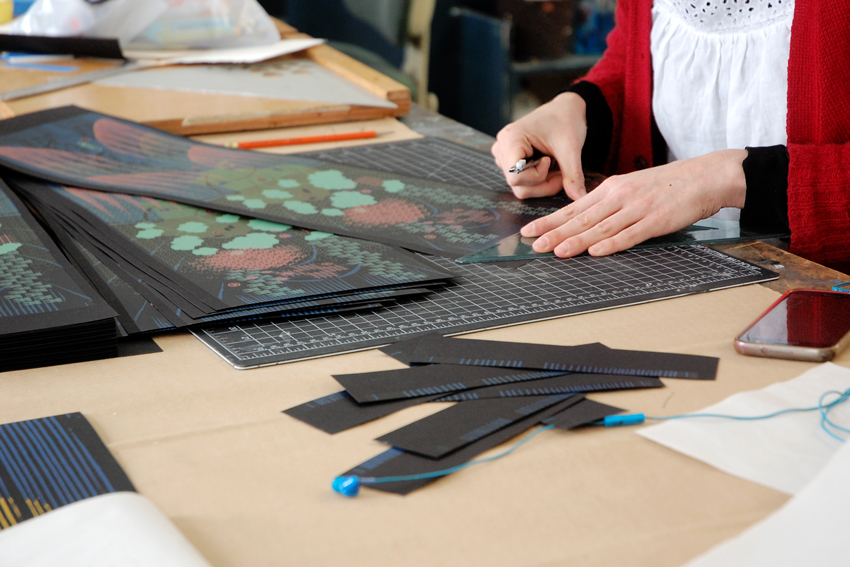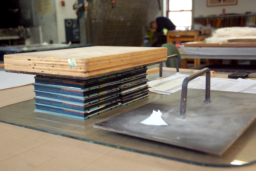 Looking at the swiftly changing human footprint on the American West and, more specifically, her home in the Bay Area, Veronica Graham transcribes her curiosity and concern into her own fictional narrative. In the silkscreen studio, she printed and bound her newest artist’s book, The Map of Neighboring Bodies, a journey and investigation into territorial divides across open waters.