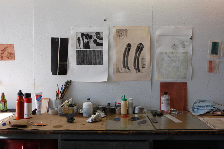 Then there are things that I found along the way. When I look at my older work there are images that are very familiar and I don’t remember making. Printmaking is a process of holding onto and letting go of the little images.”