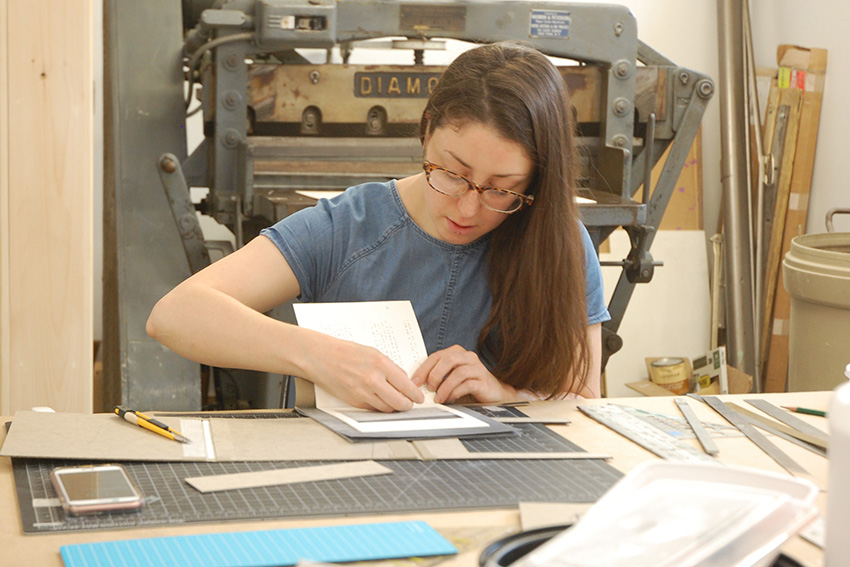 Leah Mackin is a book artist and conservator based in Pittsburgh, PA. In her work she addresses multiples, abstraction, art research, preservation, and performance, and she’s always on the lookout for a good photocopier. She holds her BFA in Printmaking and Book Arts from University of the Arts, Philadelphia, and her MFA from the School of the Art Institute of Chicago. Find more books and prints on her website and see more from her residency on our Flickr!