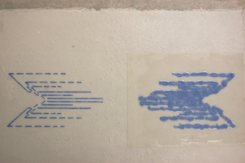The chevrons, triangles, and irregular shapes within these works fit together so precisely, it’s surprising to learn that sculptural paper is not the central medium of Tayo’s practice. In fact, much of her residency has been material research. Having begun working with handmade paper for a commissioned installation by the Phillips Collection in 2009, she’s since continued adapting imagery from ink drawing and painting—her primary ways of art making—into pulp.