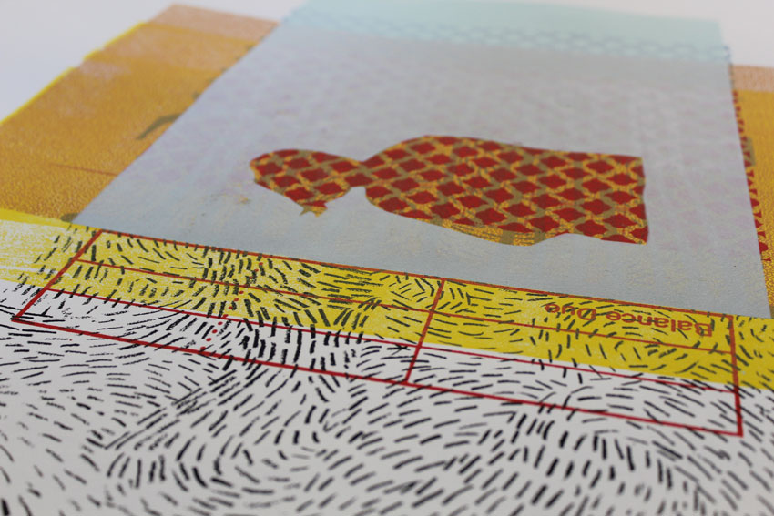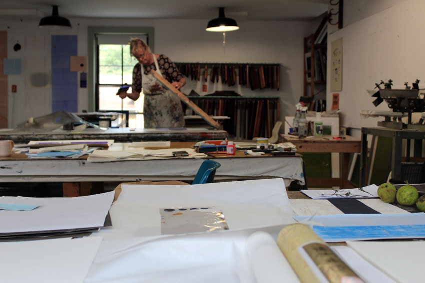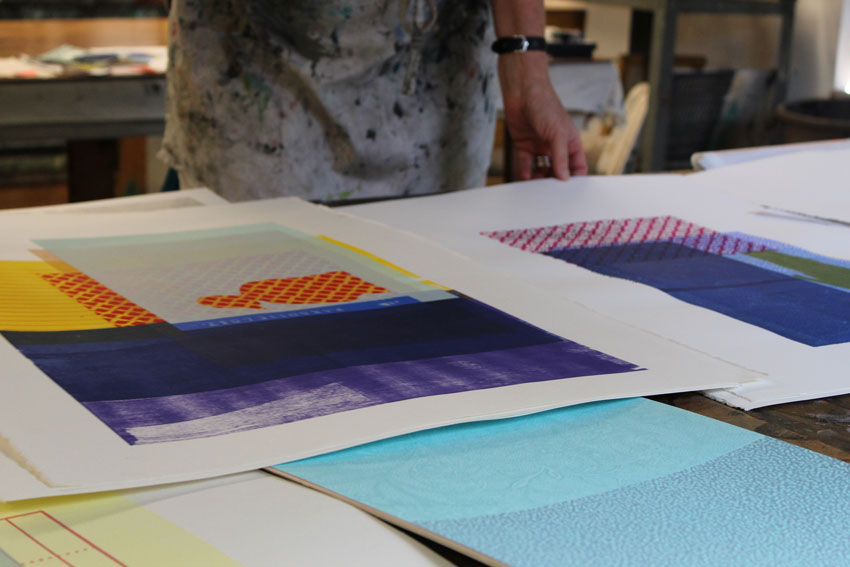 “I can’t think out how everything will look beforehand,” she says, “I can only be very aware of what is happening when I print. How does this color work? What happens when I print this on top of that?”