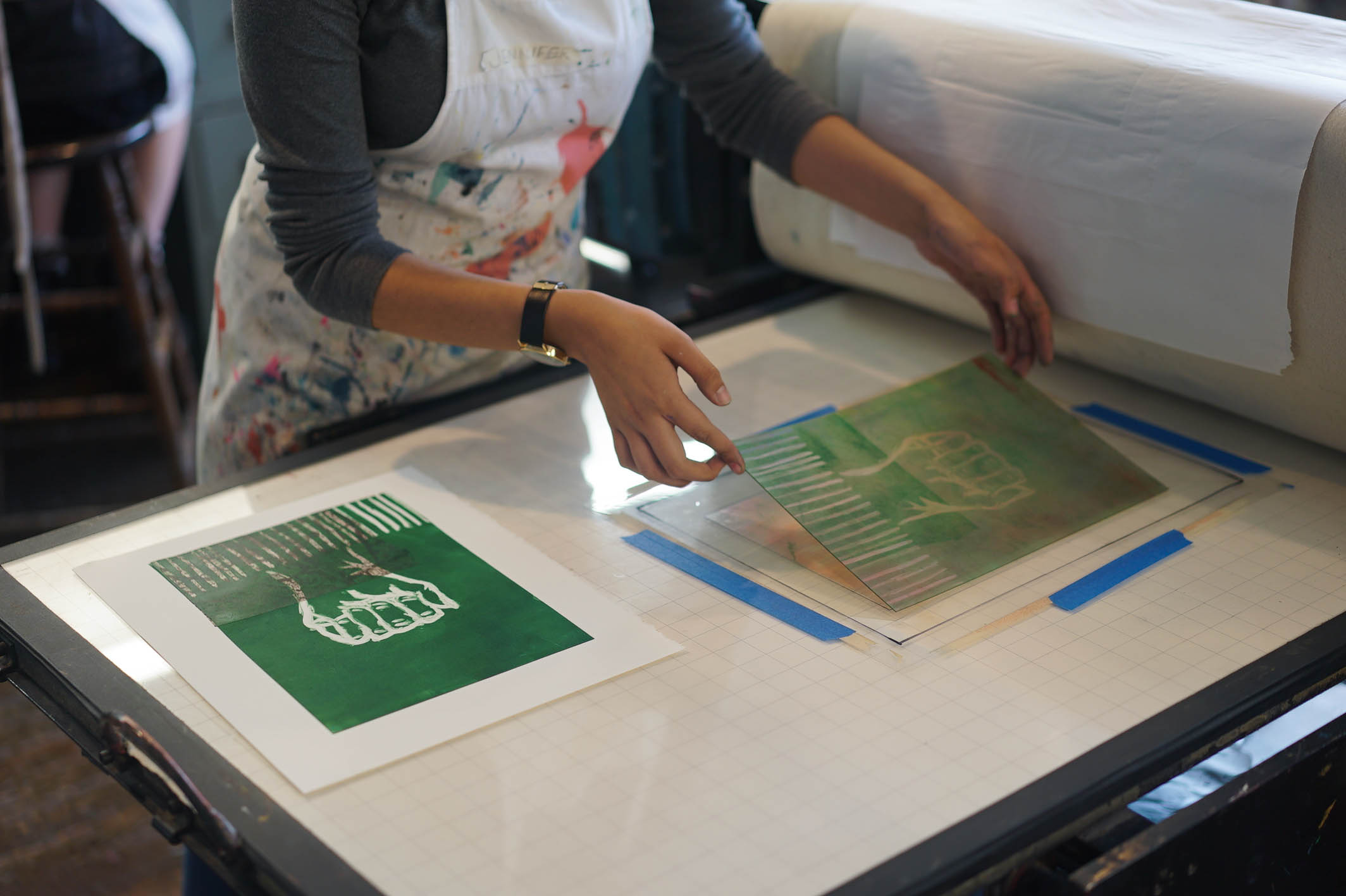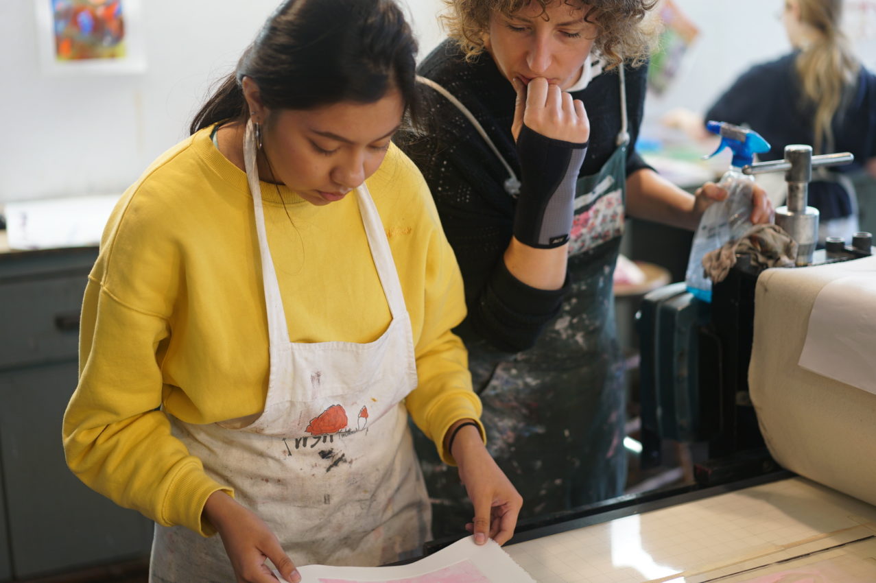 As for the silkscreen artists, they focused on layering color with Artist’s Book Resident Tona Wilson, assisted by studio intern Serena Hocharoen.