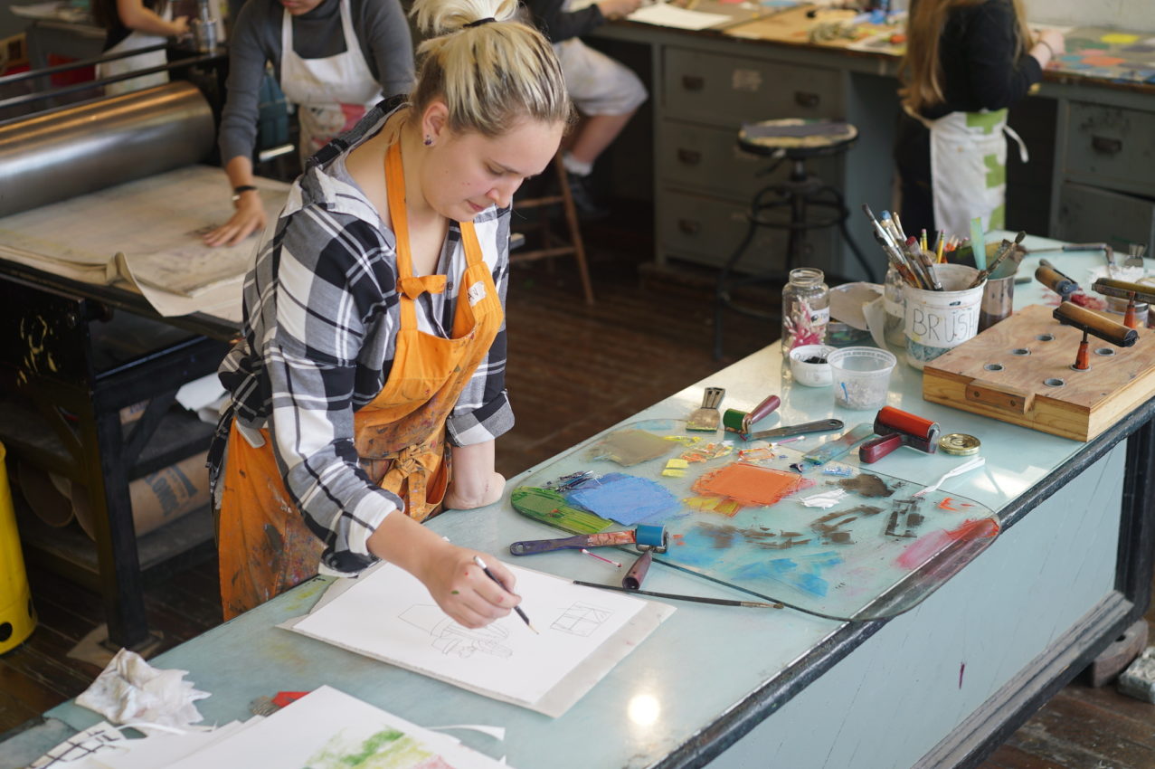 Students in intaglio worked with Artist-in-Residence, Ewelina Skowronska, with the help of studio intern Morgan Allen, to further explore texture and collage through monoprinting.