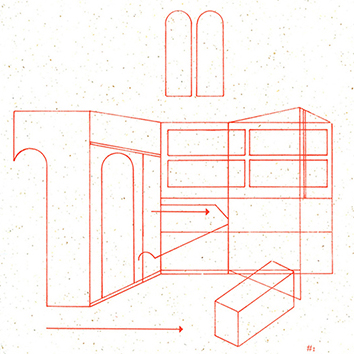 Saint Jerome’s studies are framed in the language of a book with walls folding in on the spine. Time passes with each turn of a page and throws Saint Jerome and his belongings about. Though the paintings’ artists attempted to substantiate a moment in the life of a saint, the walls which hold him swing, diminish, tessellate, then disappear across the book’s spreads. Windows slide across the room and grow into archways. The study closes along its invisible binding and opens again in an unrecognizable form.