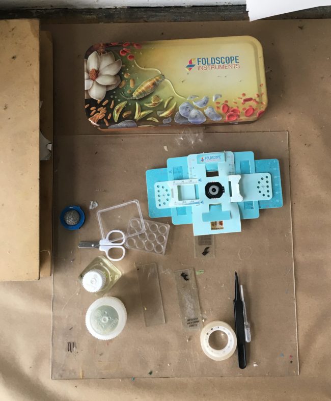 Moore brought a paper microscope called a Foldscope with her, through which she’s been able to conduct the research for this current project. The microscope is inexpensive, portable, and easily assembled. Such a tool helps make research like this accessible to many people, “when people start to feel connected to systems that surround them then they’ll feel like they can have a voice for those systems and become leaders in some way.”