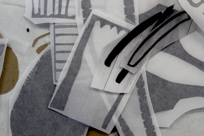Moore bridges the gaps between science, art, and environmentalism. Exploring the area, gathering water and plant samples to examine under a microscope, she creates stencil cut-outs of the tiny organisms she sees. From her background in reductive woodcuts, Moore is familiar working with graphic images and layering colors; creating stencils for silkscreen allows her to carry a visual vocabulary from one print medium to another. The stencils also render the experience of emergence, a moment of clarity, “when you’re looking at a slide, things are kind of fuzzy” she explains, “but when they come into focus they have this amazing edge and it feels like what you’re seeing is really present.”