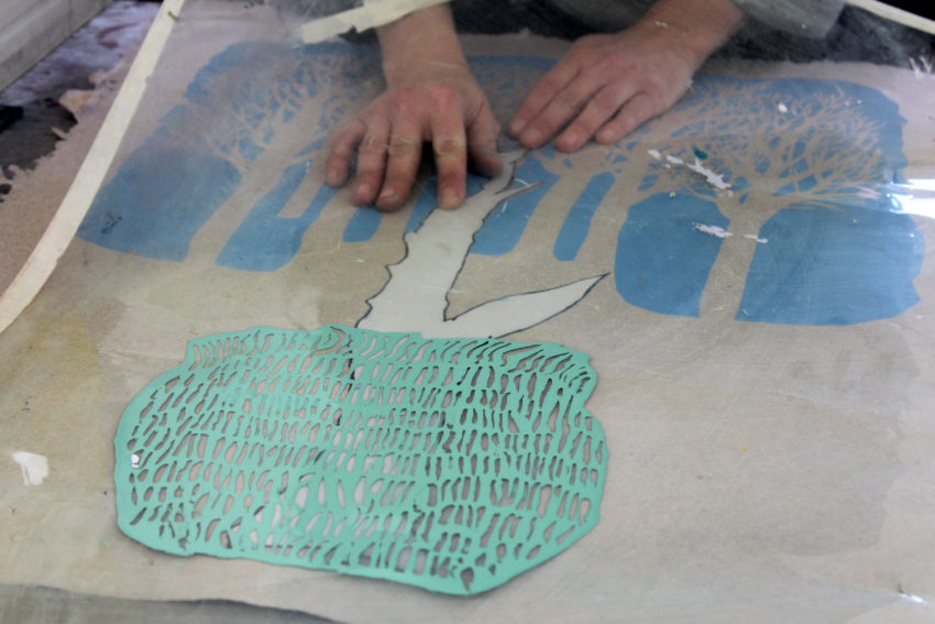 This is her goal, to bring attention to what calls to her, to ask us to notice “the smaller, magical things that happen around us—the color shifts of sycamore bark or moss on an old boulder.” DeGree’s prints catch you off guard. Their energy and confidence draw you into looking closely at something you might see every day but with new life.