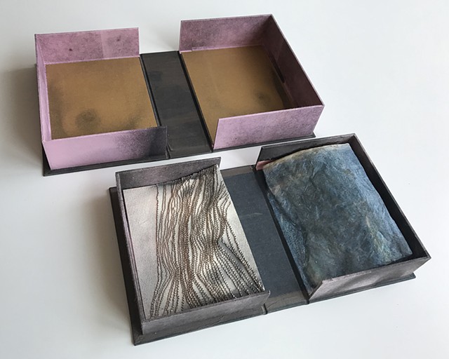In this class we will cover the basics of making different kinds of boxes as part of redefining the artist book architecturally reviewing fundamentals of tray, enclosure and hinging. We will cover our constructions with a variety of cloths and prints enjoying image distortion and inside to outside relationships. We will start with the “shoe box” and move on to more complex and hinged forms such as the clamshell box, and the postcard box. We will conclude the class by making our own unique box while researching artist books for inspiration paying close attention to form and function relationship, always remembering that there are as many box forms as there are people!