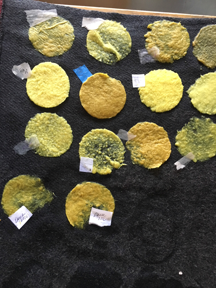 In this class students will learn to prepare and dye cellulose fibers for their projects. The techniques that are taught will be applied to dyeing and mordanting pulp prior to papermaking, and cotton fabrics, as well for brush-dyeing paper. Students will also learn how to print and pattern on cloth using thickened mordants and resists. In addition, students will learn to prepare a natural indigo vat.