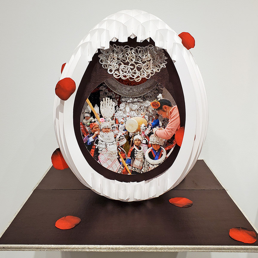 Philadelphia-based artist Colette Fu makes complex three-dimensional compositions that incorporate photography and pop-up paper engineering. Her pop-up books are included in the National Museum of Women in the Arts, Library of Congress, Metropolitan Museum of Art, Getty Research Institute, and many private and rare archive collections. Colette’s numerous awards include a 2020 Joan Mitchell Artist and Sculptor’s Grant, the Meggendorfer Prize for best paper-engineered artist book, and a Fulbright Research Fellowship to China. In 2017, Colette created the world’s largest pop-up book utilizing her own photographs – Tao Hua Yuan Ji, Source of the Peach Blossoms, a 21×14 feet pop-up book that people could enter, at the Philadelphia Photo Arts Center.