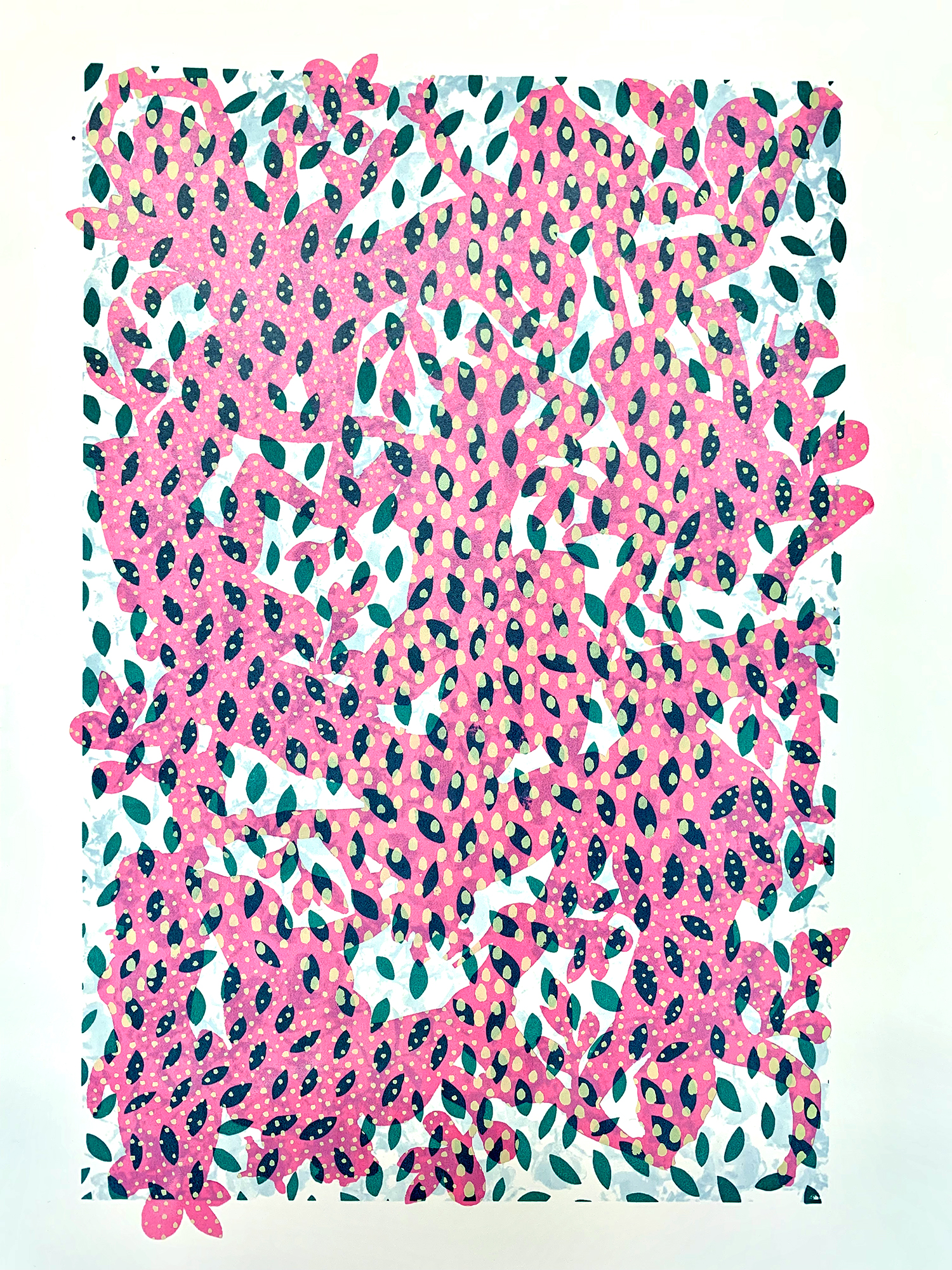 Elizabeth Castaldo is a New York based artist working in printmaking, collage, drawing and painting. She creates visually abundant works on paper and artist’s books exploring patterns as abundance and the body as a site of action and transformation. In 2025 she was an artist in residence at the Institute for Electronic Arts at Alfred University and a 2024 art-in-ed workspace resident at Women’s Studio Workshop. Her work has been exhibited internationally and is held in many private and institutional collections. Elizabeth teaches printmaking and book arts at Parsons School of Design and the Center for Book Arts, and taught silkscreen at WSW SAI in 2025.