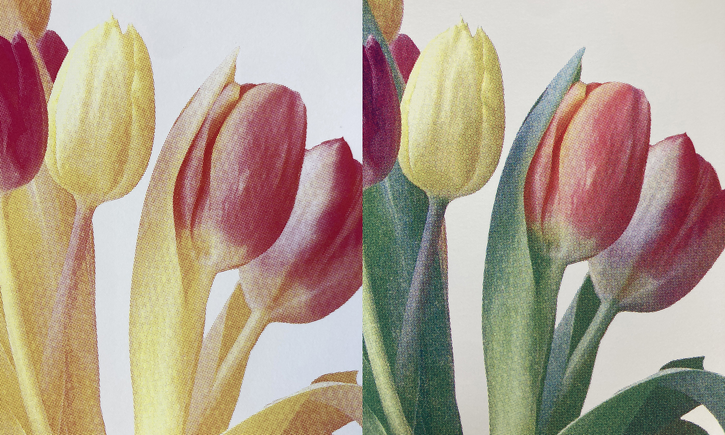 Demos will include creating halftones and color separations in Photoshop, mixing ink, and registering our print layers with pins and tabs. We will discuss how to choose dot size, mesh count, squeegee firmness, and ink transparency, and examine how these tools can be used to convey the meaning of our work. We will also leave space for experimentation, happy accidents, and unintended outcomes. Explorations will include making direct alterations to films with scissors and paint markers as well as using hands-on paper stencils to block and fill areas of the paper. Prior familiarity with screenprinting fundamentals is recommended, including comfort coating and exposing photo-emulsion, and the ability to screenprint on paper with consistent results.