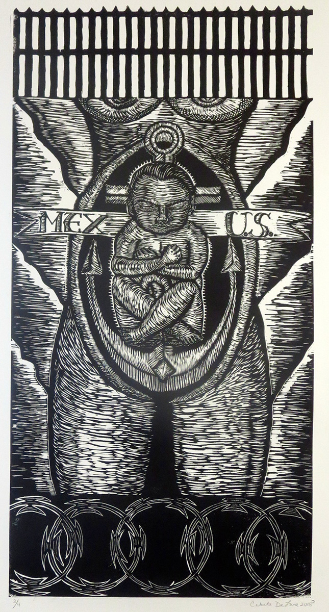 Celeste De Luna is a printmaker from the lower Rio Grande Valley of South Texas, whose work includes large-scale woodcuts and fabric installation. Her political subject matter is social commentary with a feminist sensibility. De Luna works with community in Brownsville, Texas as cofounder of the socially engaged arts collaborative Las Imaginistas. Las Imaginistas are recipients of a 2017 Artplace America Creative Placemaking grant and 2018 A Blade of Grass Fellows. Currently, De Luna is creating curriculum for a community printmaking collaborative, Taller de Permiso, (Permission Workshop,) and a lecturer at the University of Texas Rio Grande Valley.