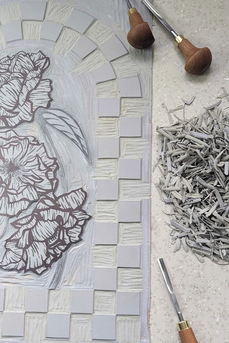Ready to move beyond creating a single-color print? This is the opportunity for a deep dive into the complex relief printing techniques of the reduction print. With a single block of material, you will design, carve, and print a vibrant, multi-layered work of art. This method involves carving the block in stages, resulting in rich, layered compositions that can’t be achieved any other way. This intensive format provides the dedicated time necessary to master registration, color theory, and fine detail carving, ensuring you leave with a quality addition of prints and a robust set of advanced skills. Printing by hand rather than on a press ensures you can continue this practice well beyond the life of the workshop, and in any home studio setup. All skill levels are welcome!