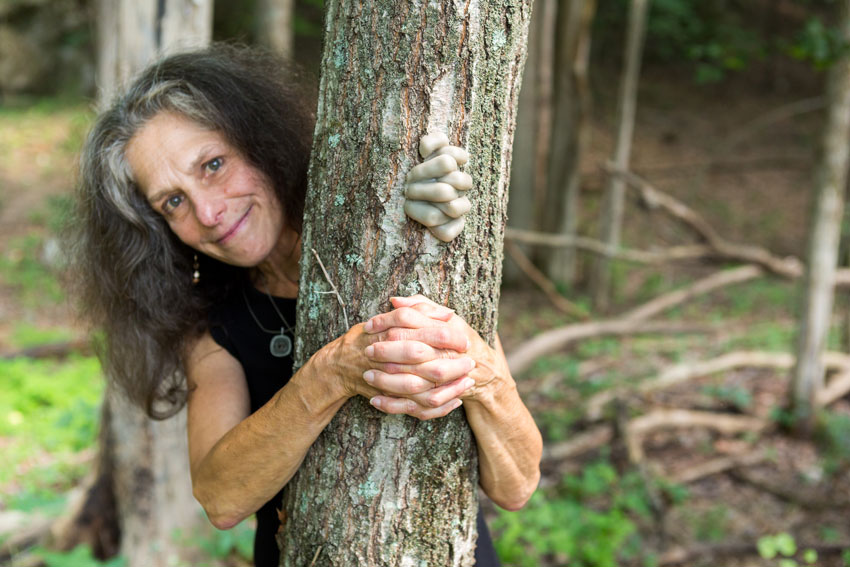 Melissa Jay Craig exhibited two distinct works, both created entirely out of hand made paper. Melissa is a highly skilled papermaker who creates sculptural forms without an underlying armature, relying exclusively on the way the pulps are processed. For au•gust, Melissa exhibited ear forms that referenced her own failing hearing while encouraging us to listen to the world around us. She also created book forms that wrapped around tree trunks. Just before installing her work along the trail, Melissa taught a week-long workshop sharing her technique with artists from across the country.