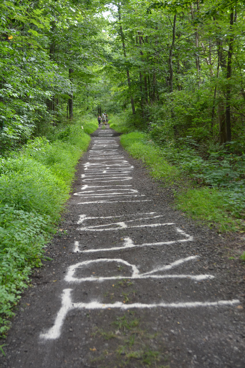 Margeaux Walter created a live performance throughout the Wallkill Valley Rail Trail with performers camouflaged into the environment.